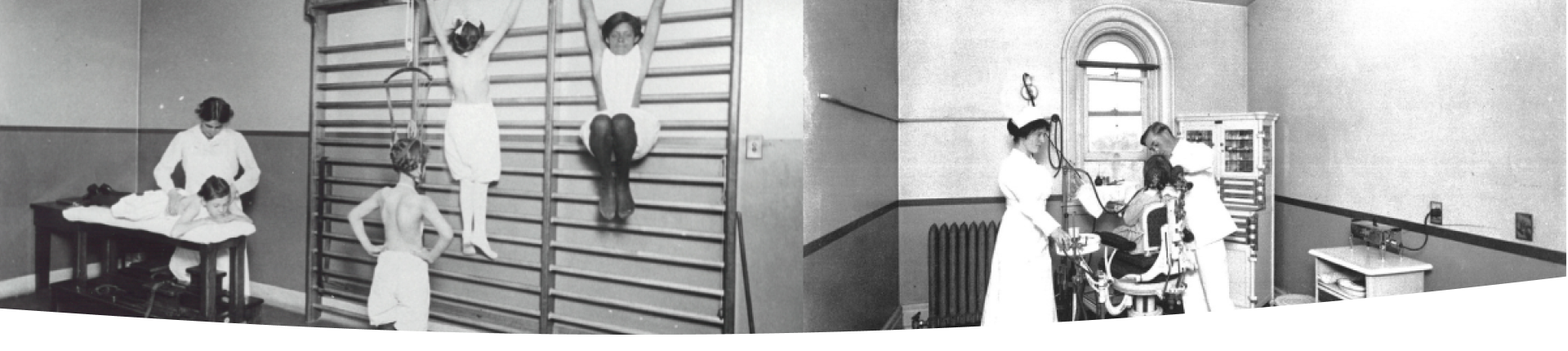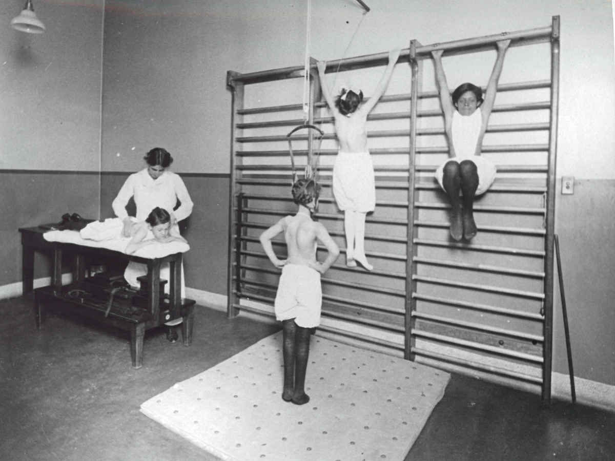 A precursor to physiotherapy was the use of massage and gymnastics. The hospital employed a skilled masseuse to successfully treat children with infantile paralysis, rheumatism, and fractures and weakened muscles. In addition, an in-house gym had special equipment where children with spinal and other injuries went to instructor-led classes to receive therapy to improve their flexibility and movement.