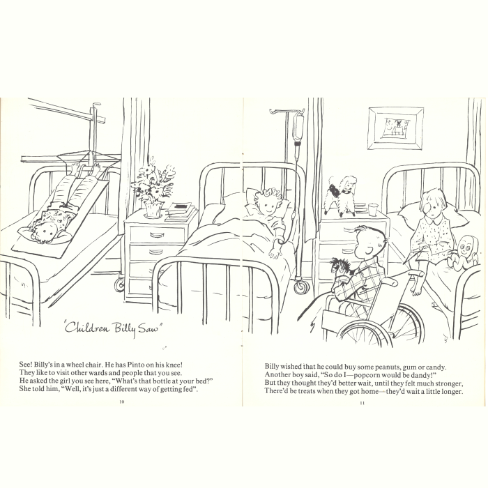 Billy Goes to the Hospital, a story and colouring book published in 1958, provided young patients with both entertainment and comfort, helping them better understand their hospital experience while engaging their creativity.